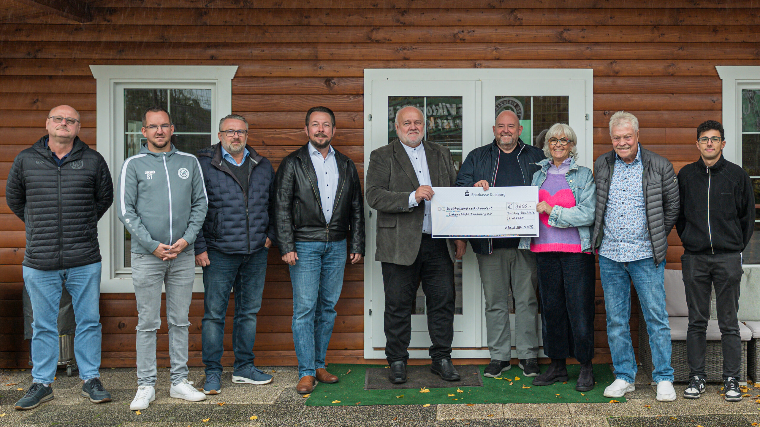 Im Rahmen unseres September-Benefizspiels gegen die Traditionsmannschaft von Schalke 04, mit dem Fußballweltmeister Olaf Thon an der Spitze, konnten wir (die KG „Alle Mann an Bord“, die Schützenbruderschaft Sankt Sebastianus Duisburg-Buchholz e.V. und TuS Viktoria Buchholz 06 e.V.) nun, nach Abrechnung der Kosten einen erfreulichen Erlös in Höhe von 3.600, – Euro an die Lebenshilfe Duisburg e.V. per Spendenscheck übergeben.